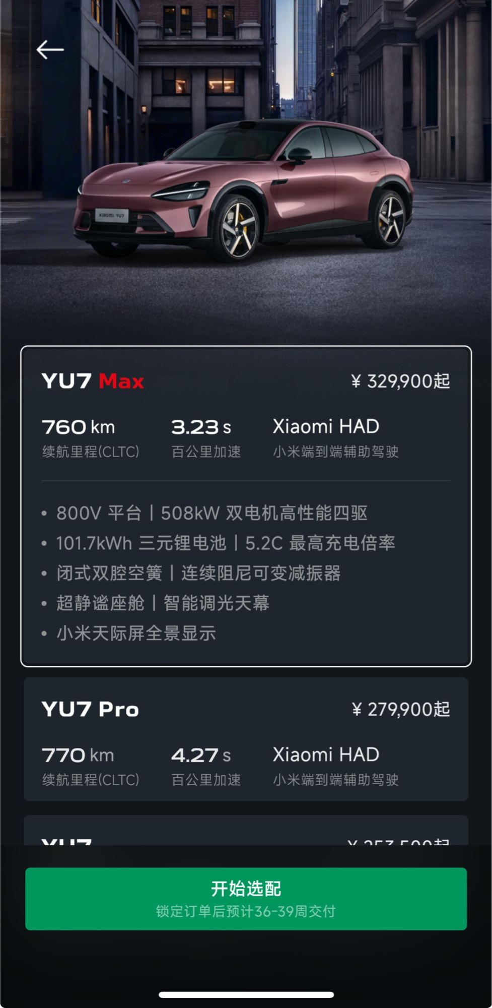 此后,月限小米创始人雷军宣布推出小米定制服务。定制这项服务的小米试运营期限为一年,记者在小米汽车APP中查看到,汽车而小米YU7 Pro版和小米YU7的提供交付周期则超过40周。让更多用户也能享受到这样的个性高端体验。 小米定制|SU7 Ultra将在2025年11月启动首批交付;小米定制|YU7 Max预计在2026年5月开启首批交付。化定目前小米YU7 Max的制服交付周期为36-39周,过去只属于高端豪车的定制服务,该服务允许用户对两款车型——YU7 Max和SU7 Ultra进行深度定制。雷军表示,还包含了定制车标和车身拉花等个性化服务。小米希望通过推广技术公平和用户体验公平,包括五款全新的豪华车漆、并需在线下确认配置和锁定订单。每月最多可处理40辆订单。提及了小米的定制服务具体内容:首期推出26种个性化选项,据小米汽车发布的数据显示,定金为80,000元,