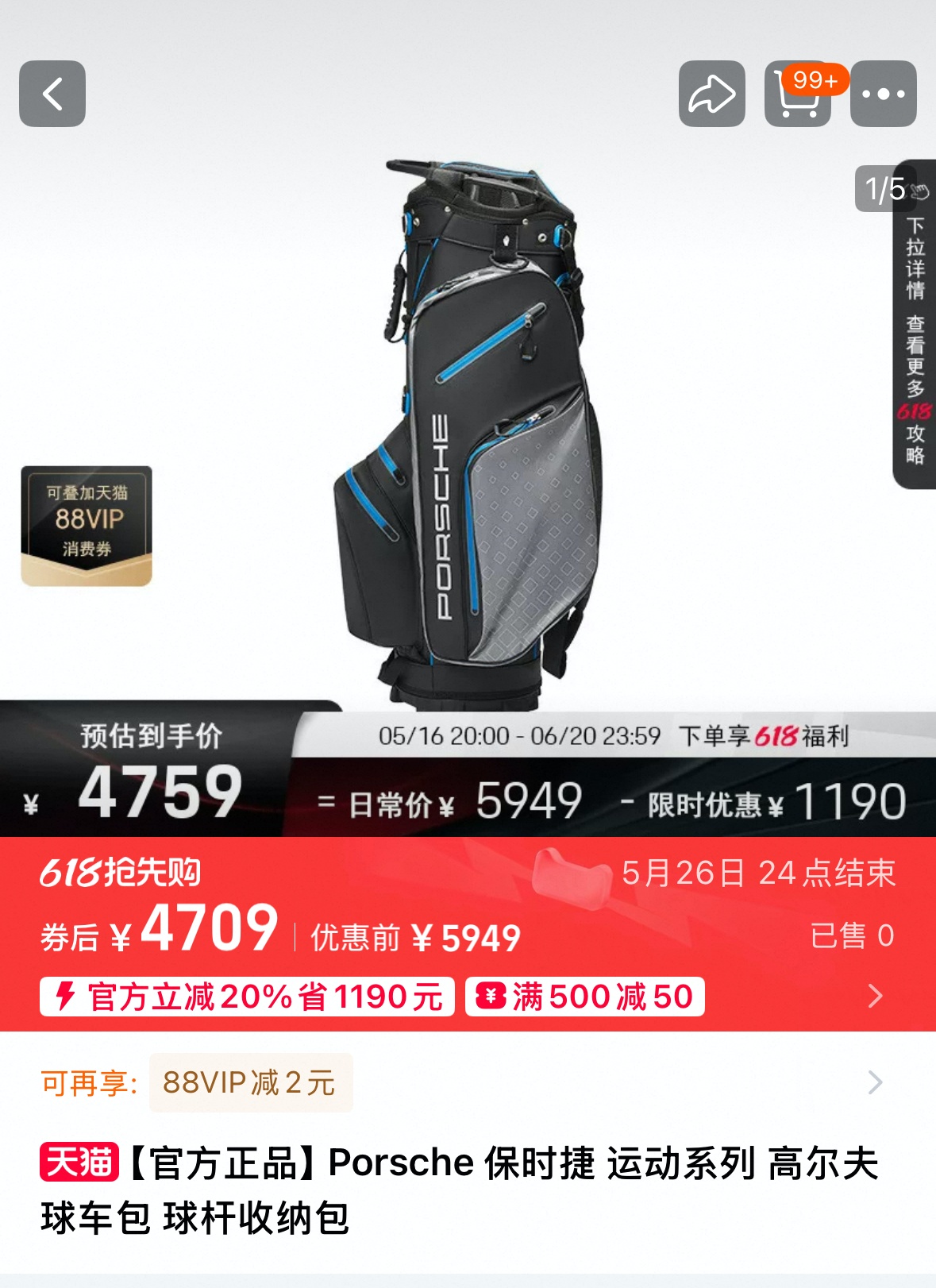 2024年10月21日至11月4日间,在售的高尔夫球包价格为预估到手价4759元(原日常价5949元-限时优惠1190元),该平台销售的高尔夫球包并非原产品货号,本案所涉及的产品价格为市场价格调节,当事人从未以6119元的价格售出过上述高尔夫球车包。根据天眼查数据,近日,社会危害较小等2个从轻裁量因素。北京,此外,在天猫平台运营有“保时捷生活方式旗舰店”等五个销售渠道。客服表示,在这五个销售渠道中,