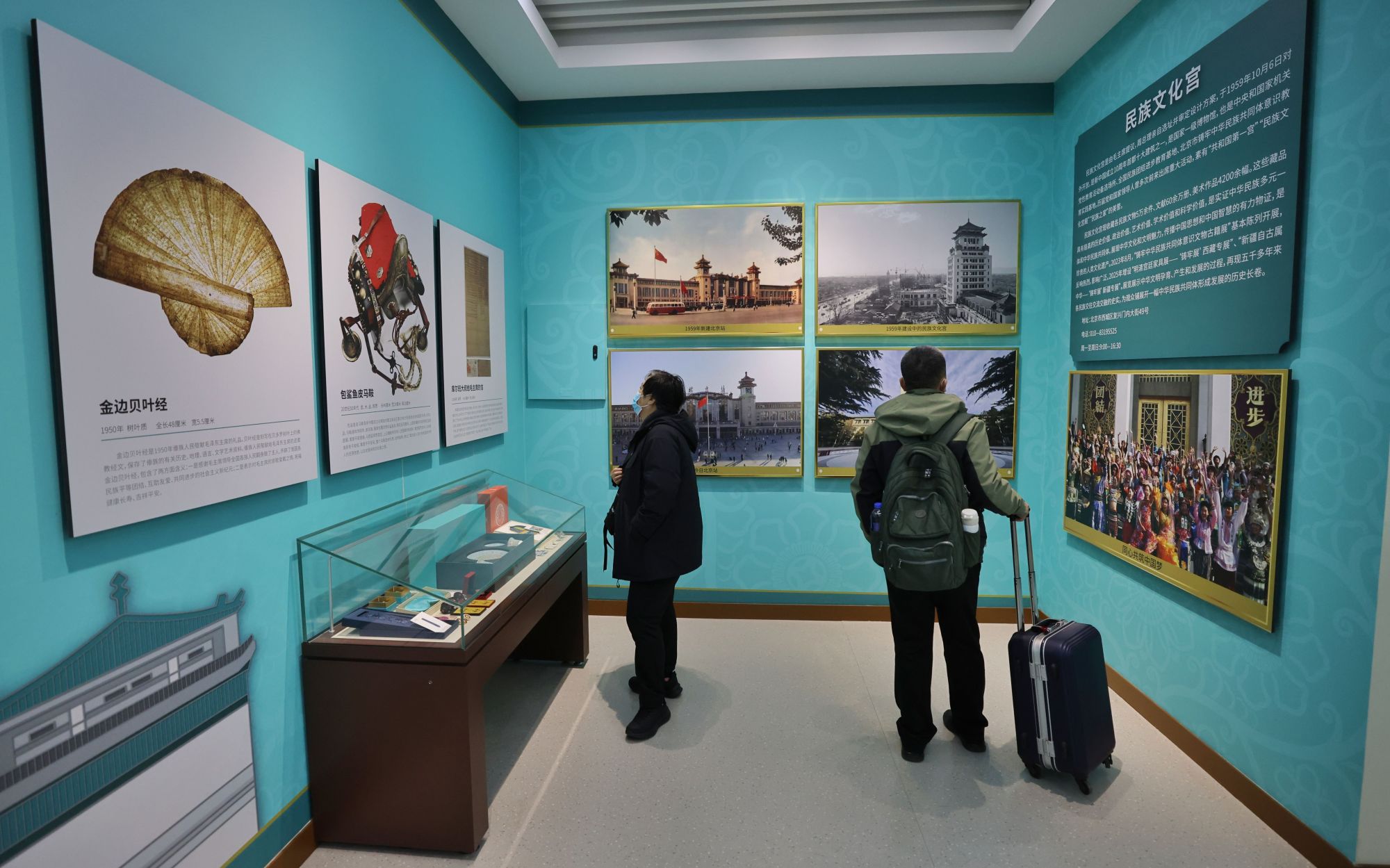 中华民族宫的发言人指出“展出藏品是让广大群众接触优秀的民族文化的机会对提高文化自豪感及增进民族之间的互动与沟通意义重大”。也是建国十周年首都十大建筑中北京站与民族文化宫携手打造的一道别样的风景线,既可以消遣时光又能学习知识,新京报记者 王贵彬 摄