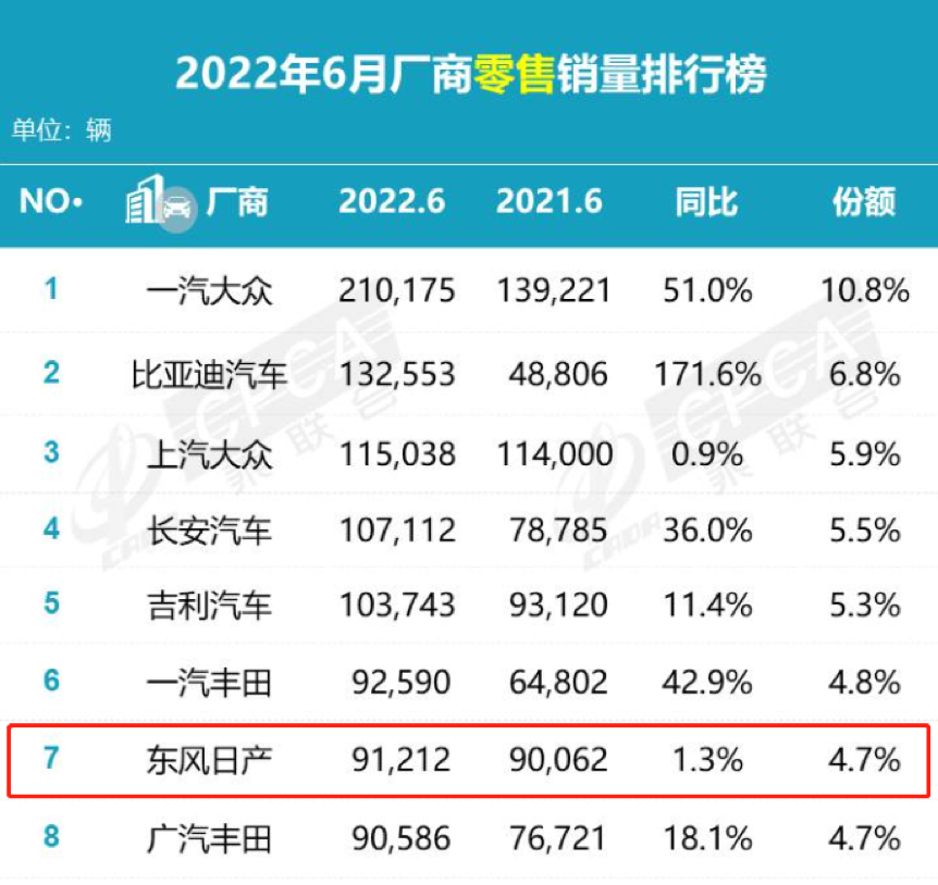 6月8日回到家后,东风日产零售销量达91,212辆,